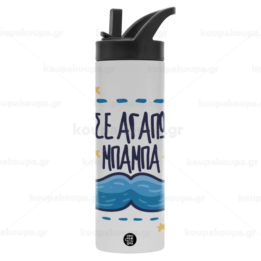 Σε αγαπώ μπαμπά!!!, Μεταλλικό παγούρι θερμός με καλαμάκι & χειρολαβή, ανοξείδωτο ατσάλι (Stainless steel 304), διπλού τοιχώματος, 600ml