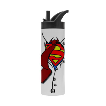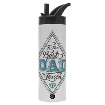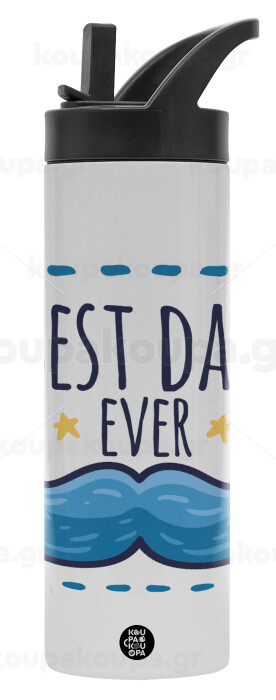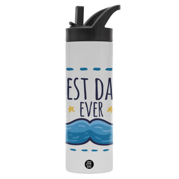 Best dad ever μπλε μουστάκι, Μεταλλικό παγούρι θερμός με καλαμάκι & χειρολαβή, ανοξείδωτο ατσάλι (Stainless steel 304), διπλού τοιχώματος, 600ml