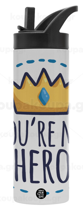 Dad, you are my hero!, Μεταλλικό παγούρι θερμός με καλαμάκι & χειρολαβή, ανοξείδωτο ατσάλι (Stainless steel 304), διπλού τοιχώματος, 600ml