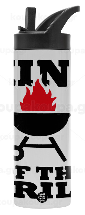 KING of the Grill, Μεταλλικό παγούρι θερμός με καλαμάκι & χειρολαβή, ανοξείδωτο ατσάλι (Stainless steel 304), διπλού τοιχώματος, 600ml