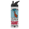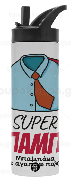 SUPER ΜΠΑΜΠΑΣ, Μεταλλικό παγούρι θερμός με καλαμάκι & χειρολαβή, ανοξείδωτο ατσάλι (Stainless steel 304), διπλού τοιχώματος, 600ml