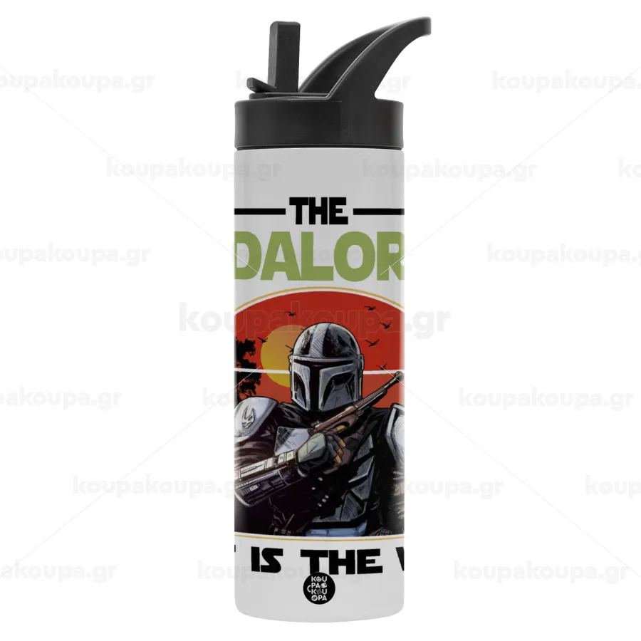 The Dadalorian, Μεταλλικό παγούρι θερμός με καλαμάκι & χειρολαβή, ανοξείδωτο ατσάλι (Stainless steel 304), διπλού τοιχώματος, 600ml