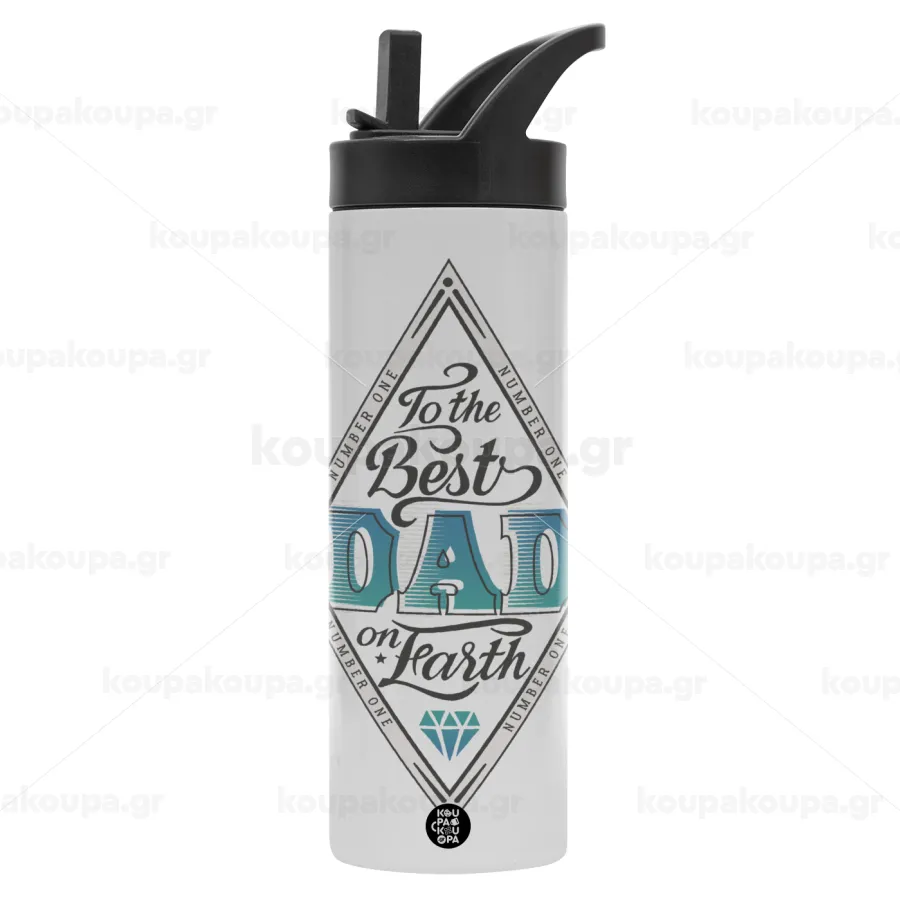 To the best DAD on earth, Μεταλλικό παγούρι θερμός με καλαμάκι & χειρολαβή, ανοξείδωτο ατσάλι (Stainless steel 304), διπλού τοιχώματος, 600ml