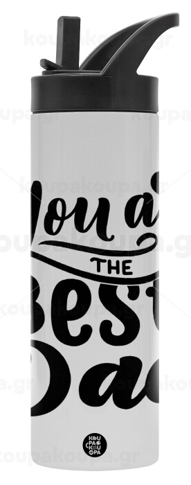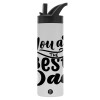 You are the best Dad, Μεταλλικό παγούρι θερμός με καλαμάκι & χειρολαβή, ανοξείδωτο ατσάλι (Stainless steel 304), διπλού τοιχώματος, 600ml