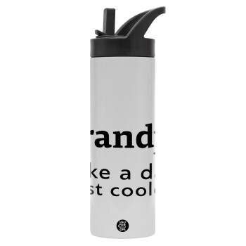 Grandpa, like a dad, just cooler, Μεταλλικό παγούρι θερμός με καλαμάκι & χειρολαβή, ανοξείδωτο ατσάλι (Stainless steel 304), διπλού τοιχώματος, 600ml