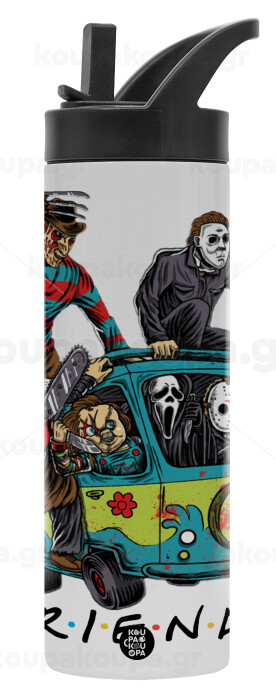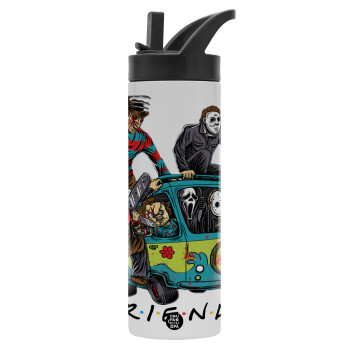 Halloween Friends Scooby Doo, Μεταλλικό παγούρι θερμός με καλαμάκι & χειρολαβή, ανοξείδωτο ατσάλι (Stainless steel 304), διπλού τοιχώματος, 600ml
