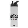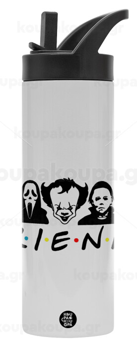 Halloween Friends, Μεταλλικό παγούρι θερμός με καλαμάκι & χειρολαβή, ανοξείδωτο ατσάλι (Stainless steel 304), διπλού τοιχώματος, 600ml