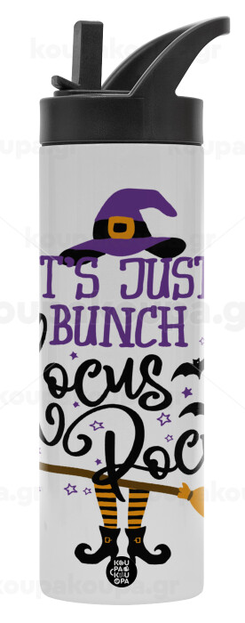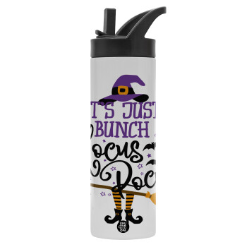 It's just a bunch of hocus pocus - halloween, Μεταλλικό παγούρι θερμός με καλαμάκι & χειρολαβή, ανοξείδωτο ατσάλι (Stainless steel 304), διπλού τοιχώματος, 600ml