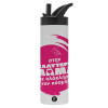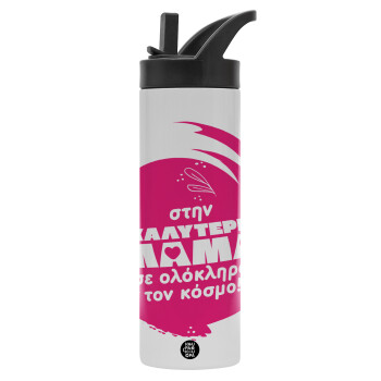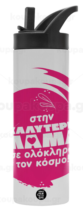 Στην καλύτερη μαμά του κόσμου!, Μεταλλικό παγούρι θερμός με καλαμάκι & χειρολαβή, ανοξείδωτο ατσάλι (Stainless steel 304), διπλού τοιχώματος, 600ml