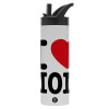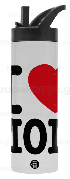 I LOVE MOM, Μεταλλικό παγούρι θερμός με καλαμάκι & χειρολαβή, ανοξείδωτο ατσάλι (Stainless steel 304), διπλού τοιχώματος, 600ml