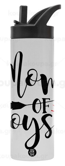 Mom of boys, Μεταλλικό παγούρι θερμός με καλαμάκι & χειρολαβή, ανοξείδωτο ατσάλι (Stainless steel 304), διπλού τοιχώματος, 600ml