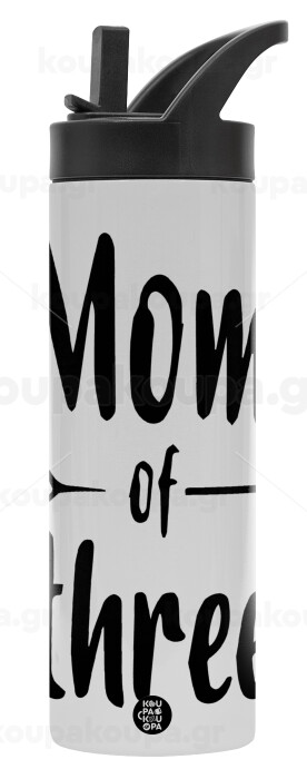Mom of three, Μεταλλικό παγούρι θερμός με καλαμάκι & χειρολαβή, ανοξείδωτο ατσάλι (Stainless steel 304), διπλού τοιχώματος, 600ml