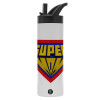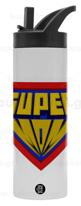 Super Mom 3D, Μεταλλικό παγούρι θερμός με καλαμάκι & χειρολαβή, ανοξείδωτο ατσάλι (Stainless steel 304), διπλού τοιχώματος, 600ml