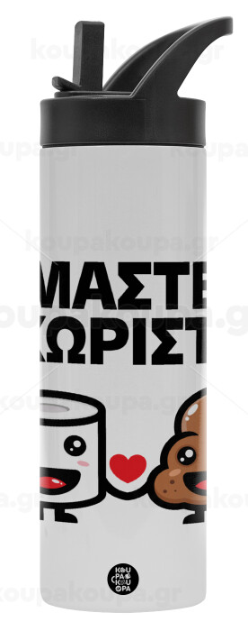 Είμαστε αχώριστοι, Μεταλλικό παγούρι θερμός με καλαμάκι & χειρολαβή, ανοξείδωτο ατσάλι (Stainless steel 304), διπλού τοιχώματος, 600ml