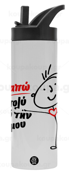 Σ'αγαπώ πιο πολύ από την ζωή μου!!!, Μεταλλικό παγούρι θερμός με καλαμάκι & χειρολαβή, ανοξείδωτο ατσάλι (Stainless steel 304), διπλού τοιχώματος, 600ml