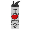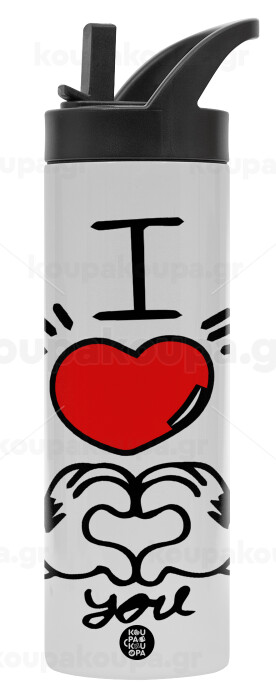 comics hands love, Μεταλλικό παγούρι θερμός με καλαμάκι & χειρολαβή, ανοξείδωτο ατσάλι (Stainless steel 304), διπλού τοιχώματος, 600ml