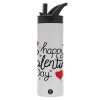 Happy Valentines Day!!!, Μεταλλικό παγούρι θερμός με καλαμάκι & χειρολαβή, ανοξείδωτο ατσάλι (Stainless steel 304), διπλού τοιχώματος, 600ml