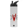 IT Lov(s)er, Μεταλλικό παγούρι θερμός με καλαμάκι & χειρολαβή, ανοξείδωτο ατσάλι (Stainless steel 304), διπλού τοιχώματος, 600ml