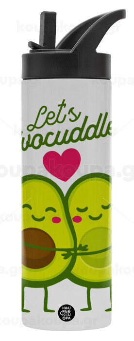 Let's avocuddle, Μεταλλικό παγούρι θερμός με καλαμάκι & χειρολαβή, ανοξείδωτο ατσάλι (Stainless steel 304), διπλού τοιχώματος, 600ml
