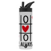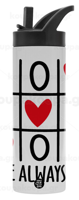 Love always win, Μεταλλικό παγούρι θερμός με καλαμάκι & χειρολαβή, ανοξείδωτο ατσάλι (Stainless steel 304), διπλού τοιχώματος, 600ml