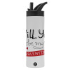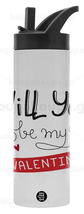 Will you be my Valentine???, Μεταλλικό παγούρι θερμός με καλαμάκι & χειρολαβή, ανοξείδωτο ατσάλι (Stainless steel 304), διπλού τοιχώματος, 600ml