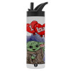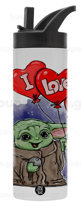 Yoda, i love you, Μεταλλικό παγούρι θερμός με καλαμάκι & χειρολαβή, ανοξείδωτο ατσάλι (Stainless steel 304), διπλού τοιχώματος, 600ml