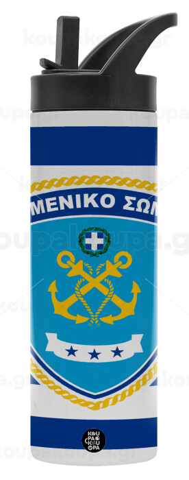 Λιμενικό σώμα, Μεταλλικό παγούρι θερμός με καλαμάκι & χειρολαβή, ανοξείδωτο ατσάλι (Stainless steel 304), διπλού τοιχώματος, 600ml
