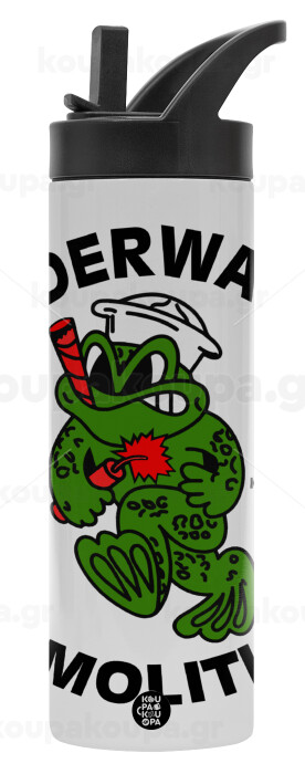 Underwater Demolition, Μεταλλικό παγούρι θερμός με καλαμάκι & χειρολαβή, ανοξείδωτο ατσάλι (Stainless steel 304), διπλού τοιχώματος, 600ml