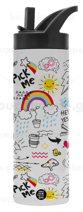 Doodle kids, Μεταλλικό παγούρι θερμός με καλαμάκι & χειρολαβή, ανοξείδωτο ατσάλι (Stainless steel 304), διπλού τοιχώματος, 600ml