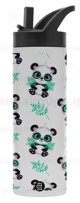 Panda, Μεταλλικό παγούρι θερμός με καλαμάκι & χειρολαβή, ανοξείδωτο ατσάλι (Stainless steel 304), διπλού τοιχώματος, 600ml