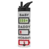 BABY, MOMMY, DADDY Low battery, Μεταλλικό παγούρι θερμός με καλαμάκι & χειρολαβή, ανοξείδωτο ατσάλι (Stainless steel 304), διπλού τοιχώματος, 600ml