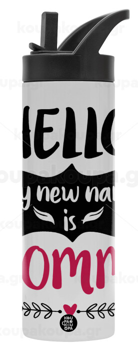 Hello, my new name is Mommy, Μεταλλικό παγούρι θερμός με καλαμάκι & χειρολαβή, ανοξείδωτο ατσάλι (Stainless steel 304), διπλού τοιχώματος, 600ml