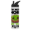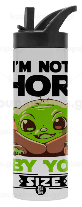 I'm not short, i'm Baby Yoda size, Μεταλλικό παγούρι θερμός με καλαμάκι & χειρολαβή, ανοξείδωτο ατσάλι (Stainless steel 304), διπλού τοιχώματος, 600ml