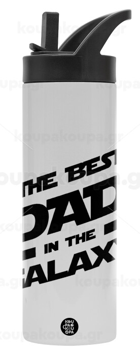 The Best DAD in the Galaxy, Μεταλλικό παγούρι θερμός με καλαμάκι & χειρολαβή, ανοξείδωτο ατσάλι (Stainless steel 304), διπλού τοιχώματος, 600ml