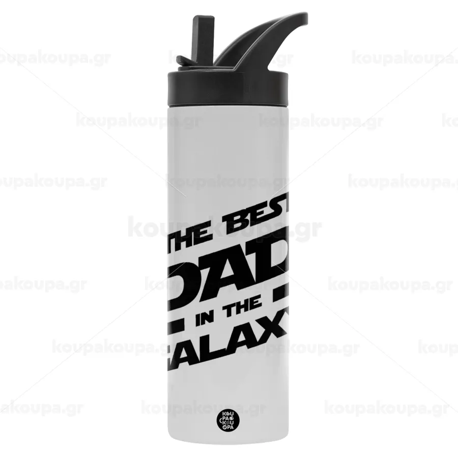 The Best DAD in the Galaxy, Μεταλλικό παγούρι θερμός με καλαμάκι & χειρολαβή, ανοξείδωτο ατσάλι (Stainless steel 304), διπλού τοιχώματος, 600ml