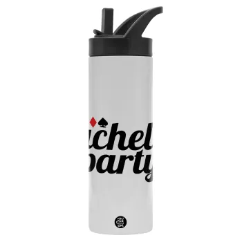 Bachelor party, Μεταλλικό παγούρι θερμός με καλαμάκι & χειρολαβή, ανοξείδωτο ατσάλι (Stainless steel 304), διπλού τοιχώματος, 600ml
