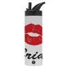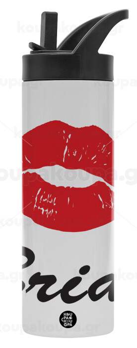 Bride kiss, Μεταλλικό παγούρι θερμός με καλαμάκι & χειρολαβή, ανοξείδωτο ατσάλι (Stainless steel 304), διπλού τοιχώματος, 600ml