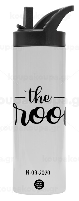 Groom & Bride (Groom), Μεταλλικό παγούρι θερμός με καλαμάκι & χειρολαβή, ανοξείδωτο ατσάλι (Stainless steel 304), διπλού τοιχώματος, 600ml