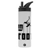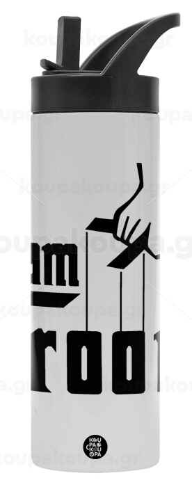 Team Groom, Μεταλλικό παγούρι θερμός με καλαμάκι & χειρολαβή, ανοξείδωτο ατσάλι (Stainless steel 304), διπλού τοιχώματος, 600ml