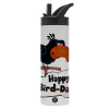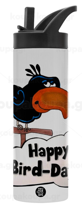 Happy Bird Day, Μεταλλικό παγούρι θερμός με καλαμάκι & χειρολαβή, ανοξείδωτο ατσάλι (Stainless steel 304), διπλού τοιχώματος, 600ml