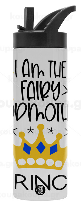 I am the fairy Godmother of the Prince, Μεταλλικό παγούρι θερμός με καλαμάκι & χειρολαβή, ανοξείδωτο ατσάλι (Stainless steel 304), διπλού τοιχώματος, 600ml