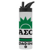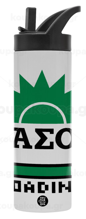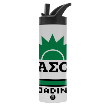 ΠΑΣΟΚ Loading, Μεταλλικό παγούρι θερμός με καλαμάκι & χειρολαβή, ανοξείδωτο ατσάλι (Stainless steel 304), διπλού τοιχώματος, 600ml