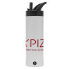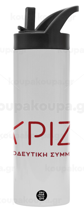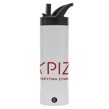 Σύριζα το νέο, Μεταλλικό παγούρι θερμός με καλαμάκι & χειρολαβή, ανοξείδωτο ατσάλι (Stainless steel 304), διπλού τοιχώματος, 600ml