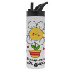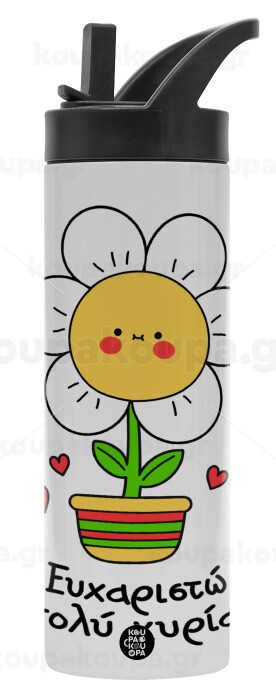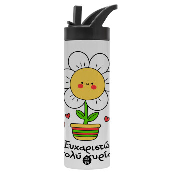 Ευχαριστώ πολύ κυρία!!!, Μεταλλικό παγούρι θερμός με καλαμάκι & χειρολαβή, ανοξείδωτο ατσάλι (Stainless steel 304), διπλού τοιχώματος, 600ml