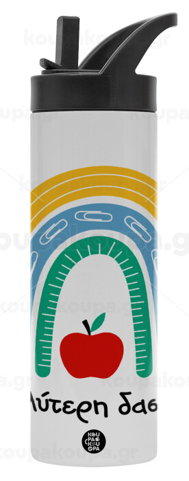 Η καλύτερη δασκάλα, Μεταλλικό παγούρι θερμός με καλαμάκι & χειρολαβή, ανοξείδωτο ατσάλι (Stainless steel 304), διπλού τοιχώματος, 600ml
