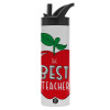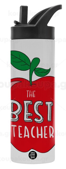Best teacher, Μεταλλικό παγούρι θερμός με καλαμάκι & χειρολαβή, ανοξείδωτο ατσάλι (Stainless steel 304), διπλού τοιχώματος, 600ml