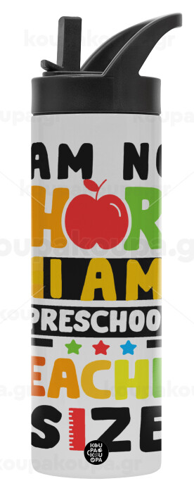 I Am Not Short I Am Preschool Teacher Size, Μεταλλικό παγούρι θερμός με καλαμάκι & χειρολαβή, ανοξείδωτο ατσάλι (Stainless steel 304), διπλού τοιχώματος, 600ml