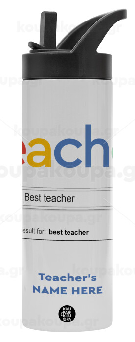 Searching for Best Teacher..., Μεταλλικό παγούρι θερμός με καλαμάκι & χειρολαβή, ανοξείδωτο ατσάλι (Stainless steel 304), διπλού τοιχώματος, 600ml