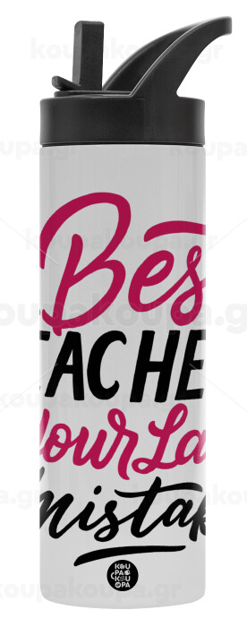 Typography quotes your best teacher is your last mistake, Μεταλλικό παγούρι θερμός με καλαμάκι & χειρολαβή, ανοξείδωτο ατσάλι (Stainless steel 304), διπλού τοιχώματος, 600ml