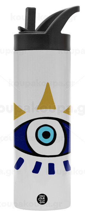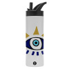 Μάτι, Μεταλλικό παγούρι θερμός με καλαμάκι & χειρολαβή, ανοξείδωτο ατσάλι (Stainless steel 304), διπλού τοιχώματος, 600ml